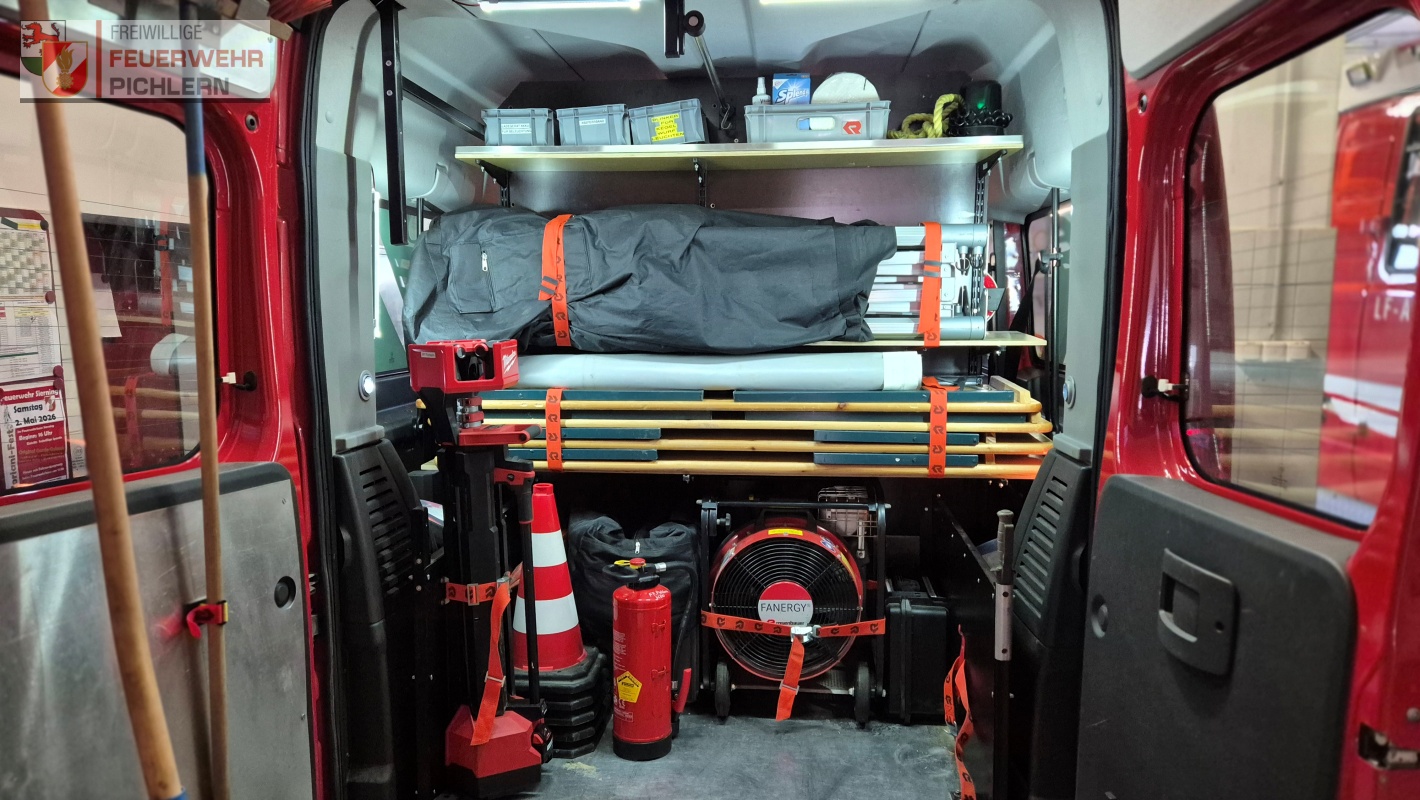 Ausgerüstet mit Blaulicht Warnanlage, Feuerwehrsignalhorn, Digitalfunk, Licht Fluter Akku, Be- und Entlüftungsgerät, Feuerwehr Zelt 3x3m, 2x Tische mit Bänken