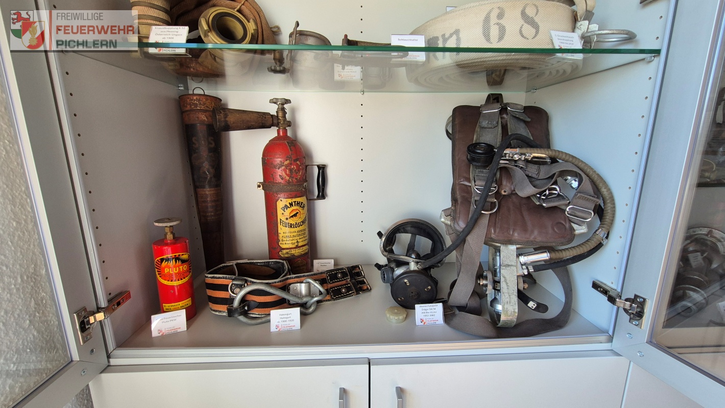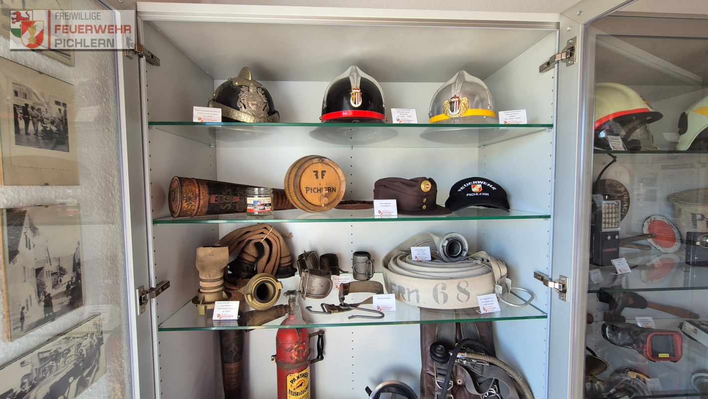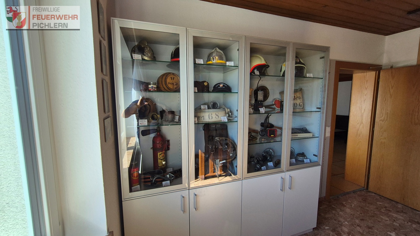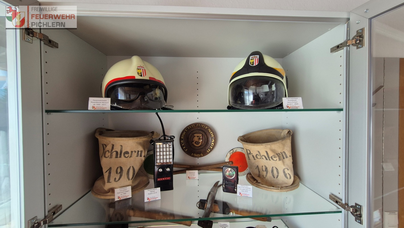 Im Stiegenhaus unseres Feuerwehrdepots hat Alexander Sturmberger, unterstützt von einigen Kameraden, ein kleines Museum eingerichtet. Dort sind historische Helme aus den 1890er Jahren, unserem Gründungsjahr, sowie zahlreiche weitere Feuerwehrutensilien wie Schläuche, Löscheimer, Feuerlöscher und alte Tragkraftspritzen ausgestellt. Jede Vitrine und Beschreibung wurde von ihm persönlich gestaltet und gibt einen einzigartigen Einblick in die Entwicklung und Geschichte der Feuerwehr Pichlern.